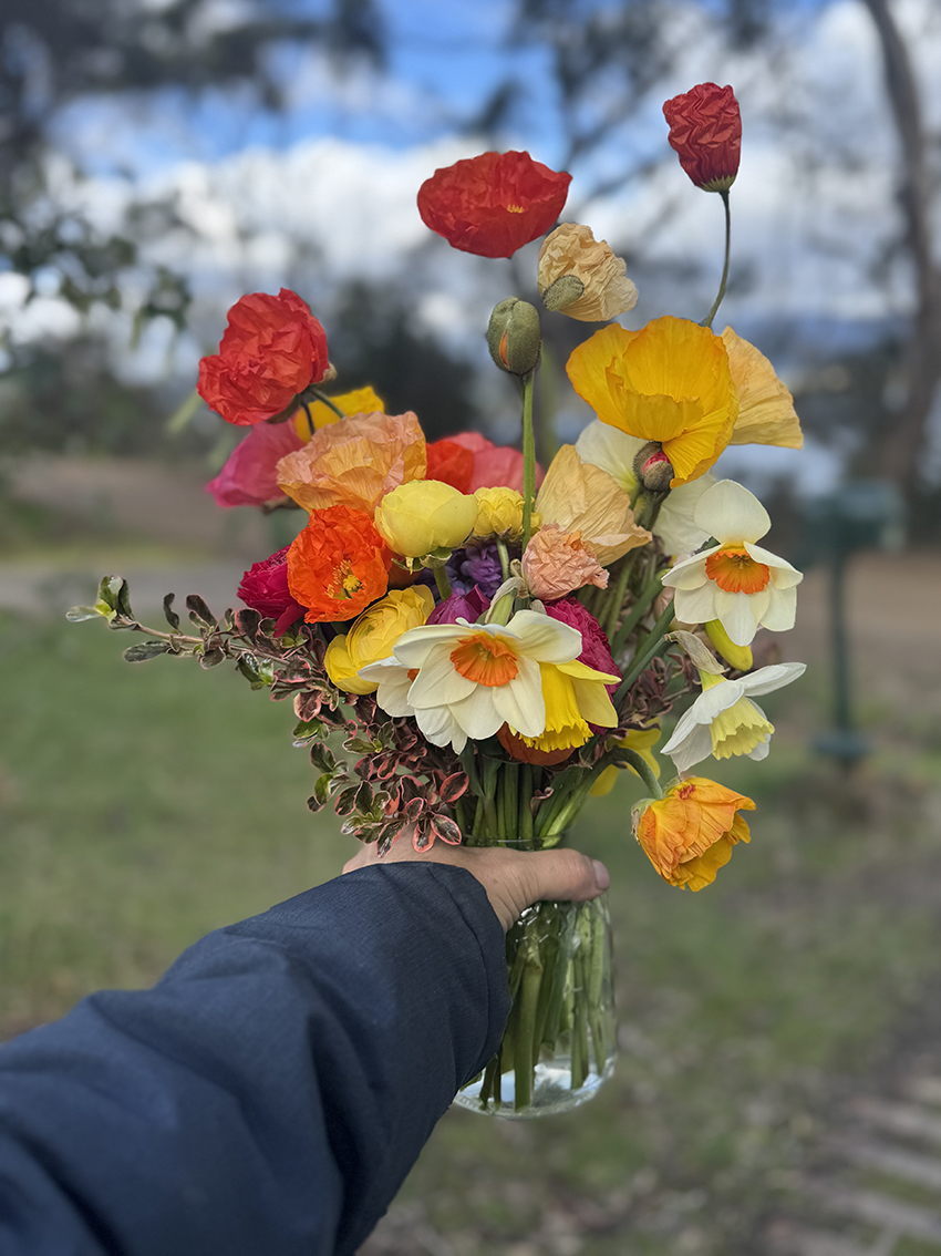 Pretty, fresh Spring posy using the best of the season, grown at our flower farm at Woodbridge.